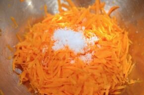 - ◆ 塩をもみ込んだ人参は、味がぼけないようにしっかり水気をしぼりましょう。