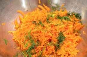 [3] マリネ液に人参と干しいもを入れ、ディルの葉を茎からはずして加え、全体によく混ぜます。冷蔵庫で30分休ませたら器に盛り付け、完成です。