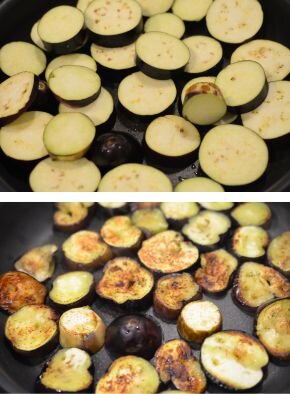 - ◆ なすは一緒に煮込まず焼き色をつけることで香ばしくなり、溶けてなくなることもないので、ひと手間ですが別で調理しましょう。