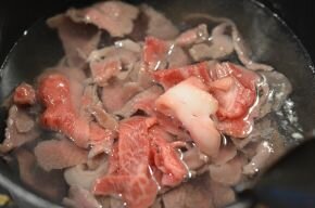 - ◆ [2]の工程は牛肉のアク抜きです。下茹でして余分なアクを取り除いた後、水から煮ることで澄んだおつゆになります。 また弱火で静かに煮ることで、牛肉の美味しいお出汁が出ます。 ひと手間ですが、必ずやってくださいね。