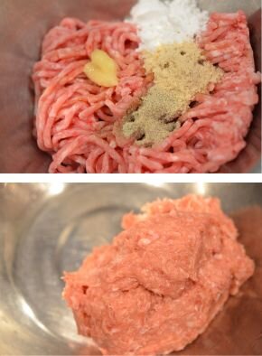 - ◆ ひき肉に先に味付けをしてしっかり混ぜることで、おいしくなります。