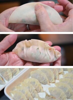 - ◆ 餃子の種は20~30分ほど冷蔵庫で寝かせると、扱いやすくなります。