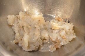 - ◆ 食べたときにプリプリした食感を楽しむため、完全にミンチ状にはせず、えびの身がごろごろ入っているように作りましょう。