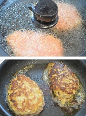 - ◆ フタをしてレシピ通りに時間を計りながら焼くと、中まで火が通った失敗なしのハンバーグの出来上がりです。